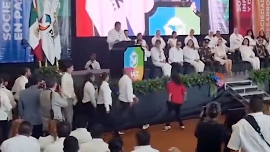 Entrevistado al concluir el evento, el gobernador David Monreal calificó como “lamentable” que la madre fuera sacada del recinto con lujo de violencia y dijo que tiene la libertad manifestarse.