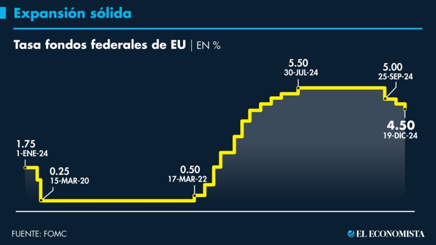 La Reserva Federal (Fed) recortó ayer por tercera vez consecutiva la tasa de interés en 25 puntos base (pb), hasta un rango de 4.25-4.50%, y advirtió que ralentizará el ritmo de caída de los costos de los préstamos, dada la relativa estabilidad de la tasa de desempleo y el escaso avance reciente en la reducción de la inflación.