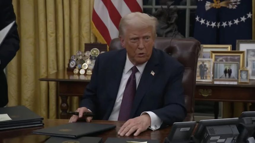 El presidente Donald Trump afirmó este lunes desde su Despacho Oval que los aranceles del 25% para México y Canadá se aplicarán a partir del próximo 1 de febrero, lo que generó una depreciación del peso de más del 1% tras el anuncio.