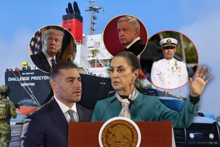Aunque el contralmirante Farías, hermano del sobrino del ex Secretario de Marina Rafael Ojeda, se amparó y quedó libre, la presidenta Claudia Sheinbaum promete que habrá más arrestos en el caso del megabuque con millones de litros de huachicol decomisado. | Especial