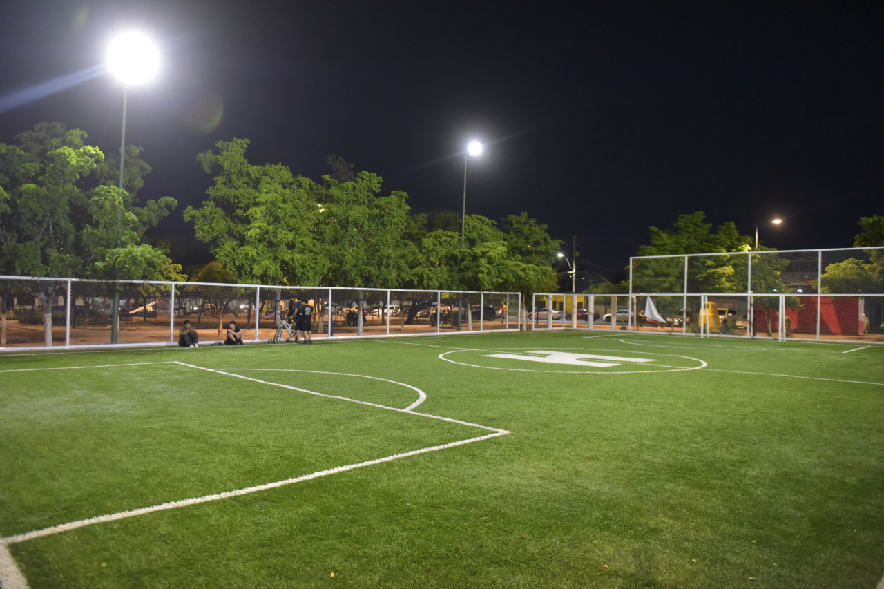 El lugar ubicado en la colonia Olivares ahora cuenta con una mucho mejor iluminación, pasto sintético en la cancha de futbol y acrílico en las dos cachas de básquet, así como ejercitadores y juegos infantiles nuevos.