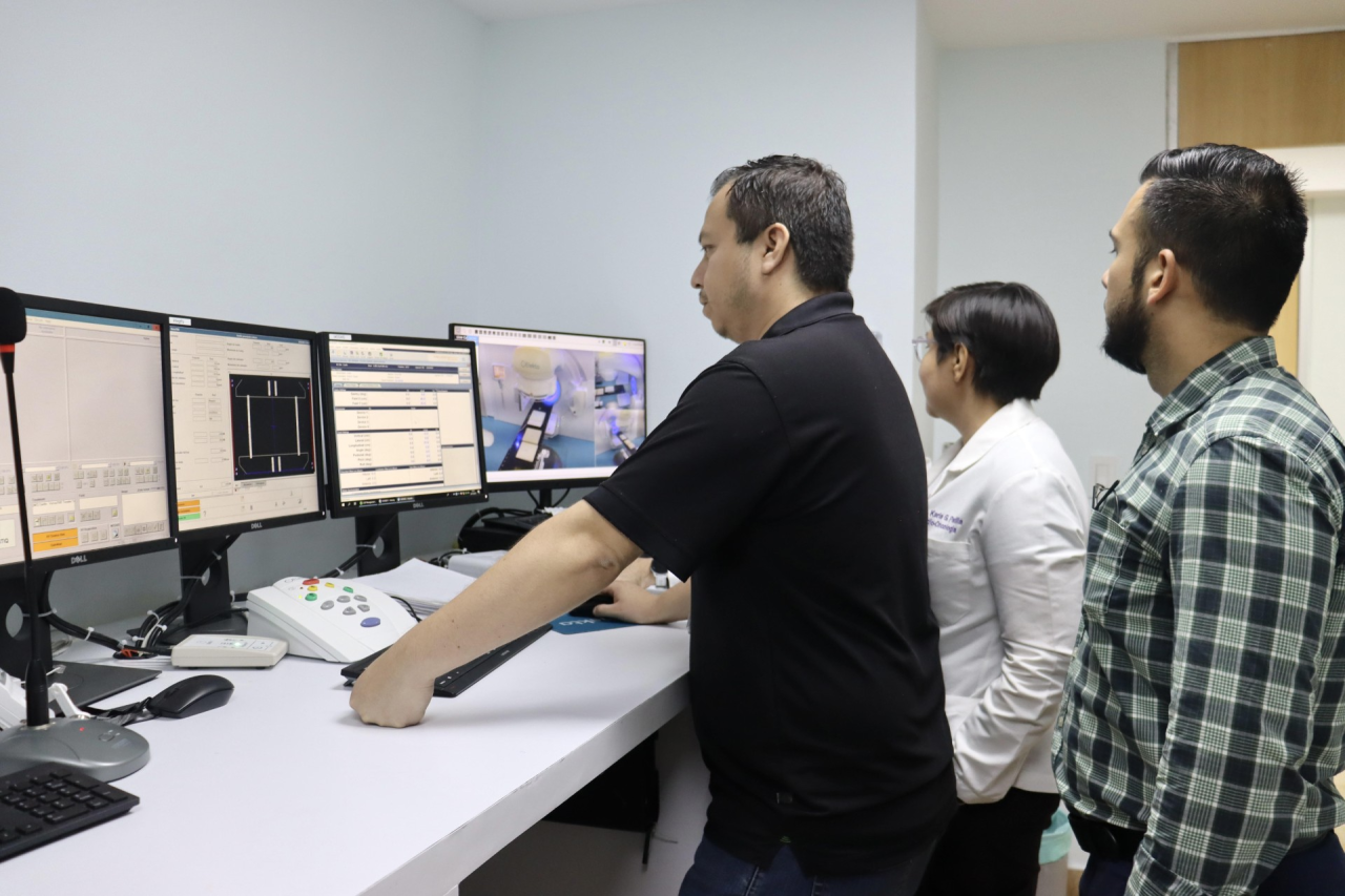 La especialista en Radio Oncología, doctora Karla Gabriela Padilla Duarte destacó que gracias al apoyo del director general del IMSS, maestro Zoé Robledo, Directivos del propio Hospital y el jefe del Servicio de Radioterapia, el IMSS en Sonora cuenta con un acelerador lineal con tecnología de última generación, siendo posible realizar esta radiocirugía otorgando un tratamiento con técnica avanzada y muy precisa para el tumor benigno que padece la derechohabiente.
