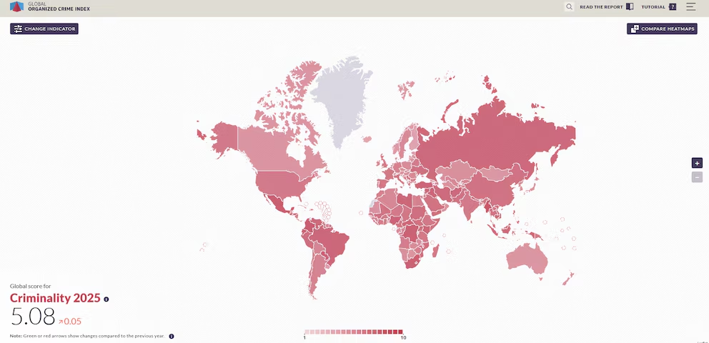 Los resultados muestran que el problema global del crimen organizado avanza más rápido de lo que los Estados logran fortalecer su capacidad de respuesta: de 57 países con alta criminalidad y baja resiliencia en 2023 se pasó a 66 en 2025.