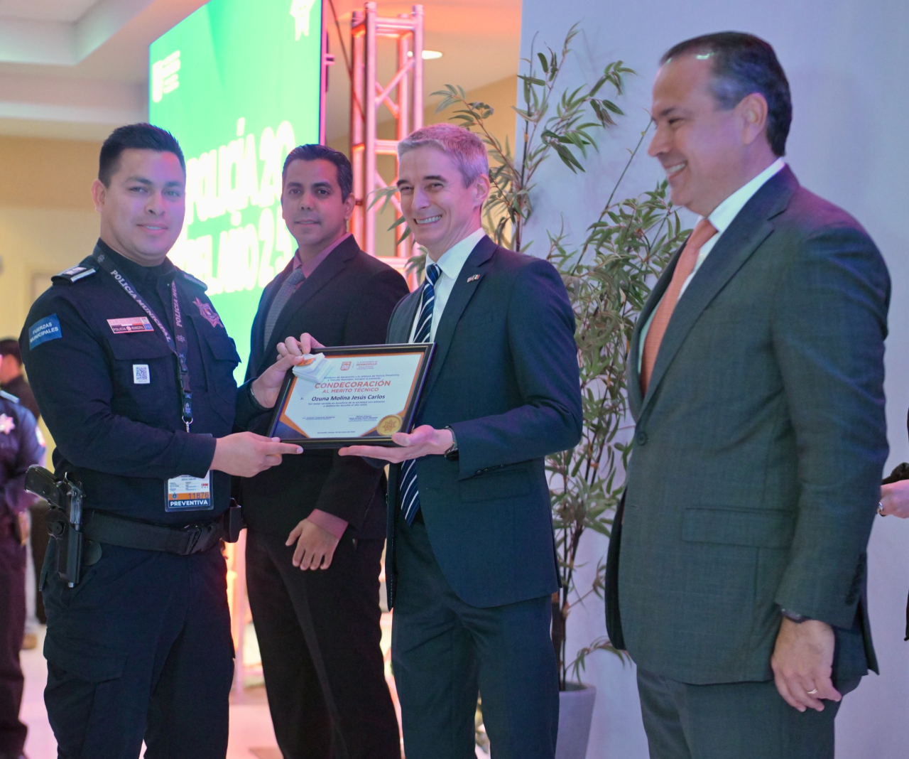 Acompañado de Drew Hoster, cónsul general de los Estados Unidos en Hermosillo, Toño Astiazarán destacó que eso no es producto del gobierno, sino que es por lo que los policías hacen a diario por la ciudad, por lo cual, no sólo se tiene que reconocer, agradecer y ser empáticos con quienes el día de hoy han recibido este reconocimiento, pero también para quienes hoy ya no están.