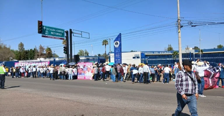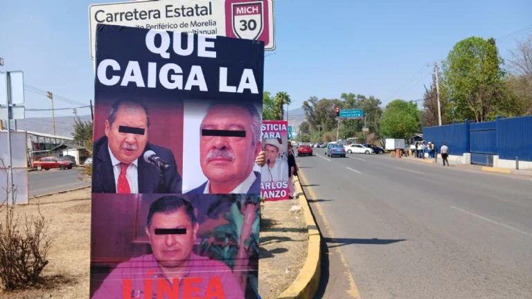 Con mamparas, cartelones, plotters y matracas, los seguidores de Carlos Manzo se desplegaron a lo ancho de la valla que circunda las instalaciones de la Fiscalía del Estado, así como en los camellones del periférico Paseo de la República de Morelia.