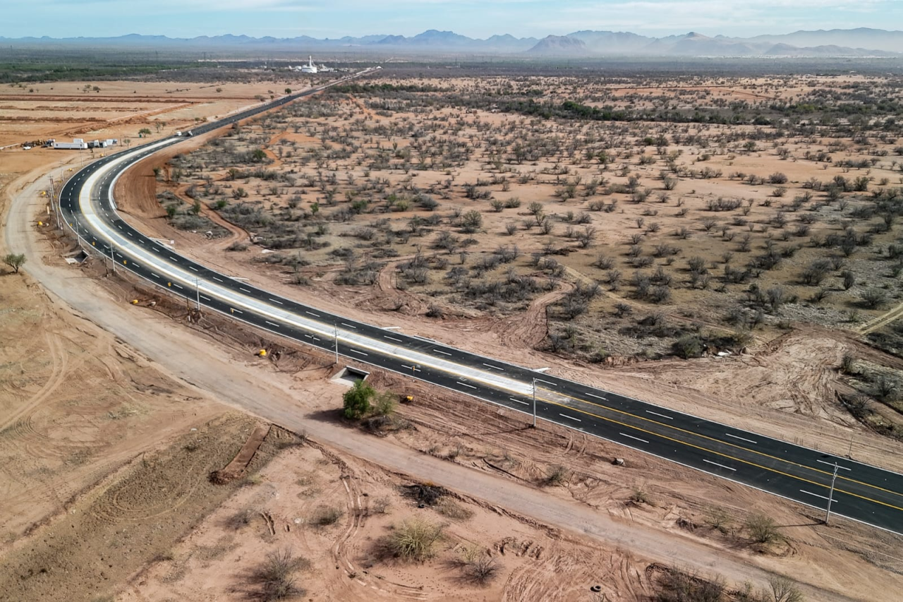 Lo acompañaron Astarté Corro Ruiz, titular de la Dirección General de Desarrollo de Infraestructura (DGDI) y Alejandro Guerrero Comella, representante Legal de la concesionaria Seri, S.A. de C.V., a cuyo cargo estará la continuidad de la obra que recorrerá otros 15.1 kilómetros en segunda etapa y 11 .1 kilómetros en la tercera.