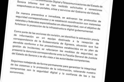 Suspensión de pagos en Sonora: Hacienda revisa a fondo su sistema por “supuesto compromiso de datos”