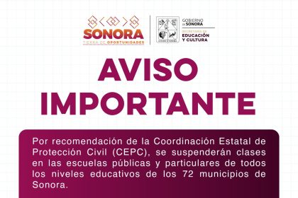 Emite Gobierno de Sonora medidas preventivas para sector educativo ante pronóstico de lluvias